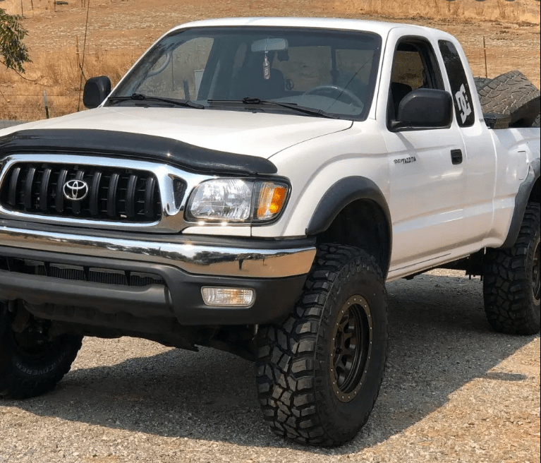 He drives a later model lifted Toyota Tacoma, a two-door with not-quite a backseat similar to the one pictured below.